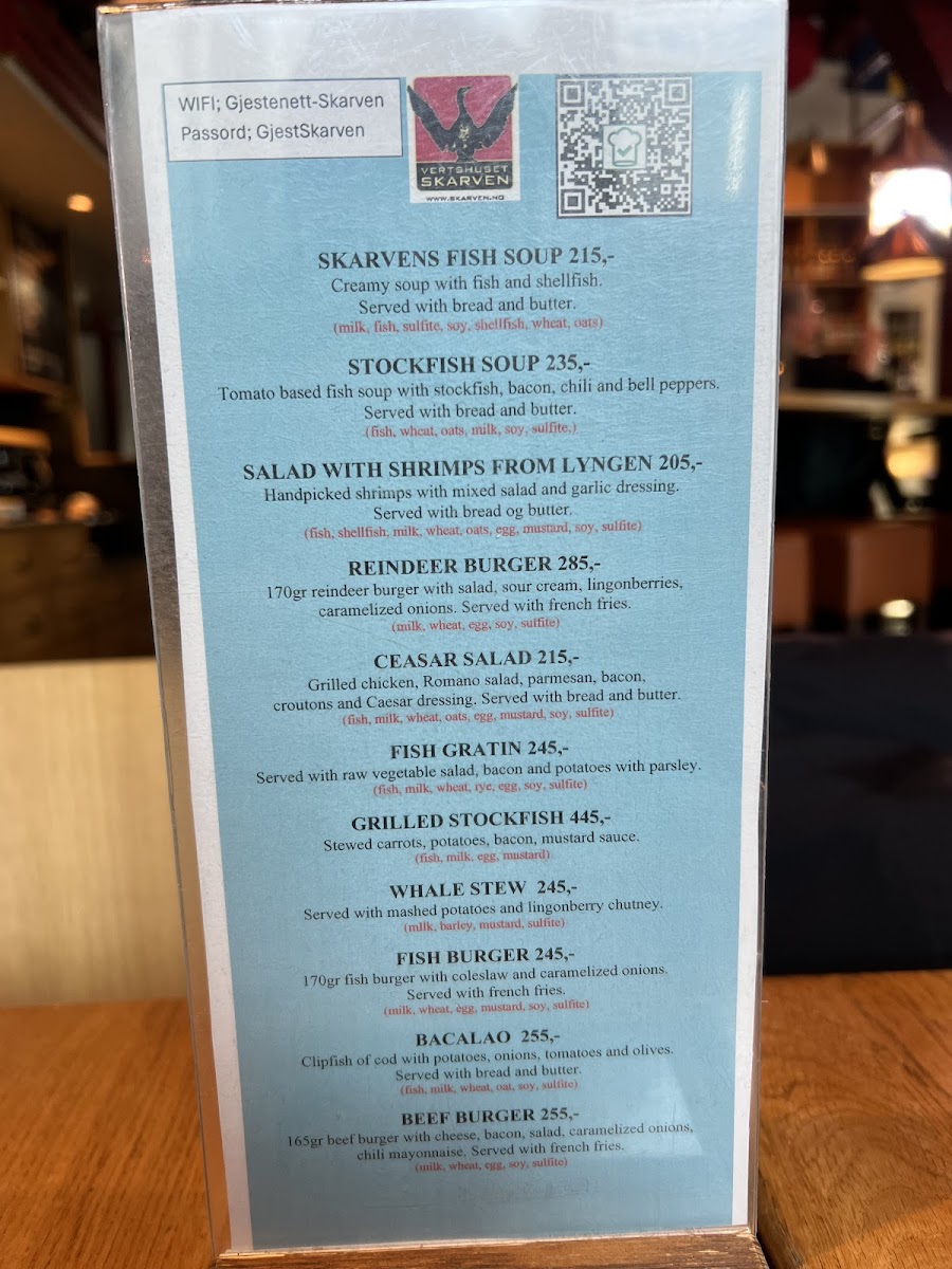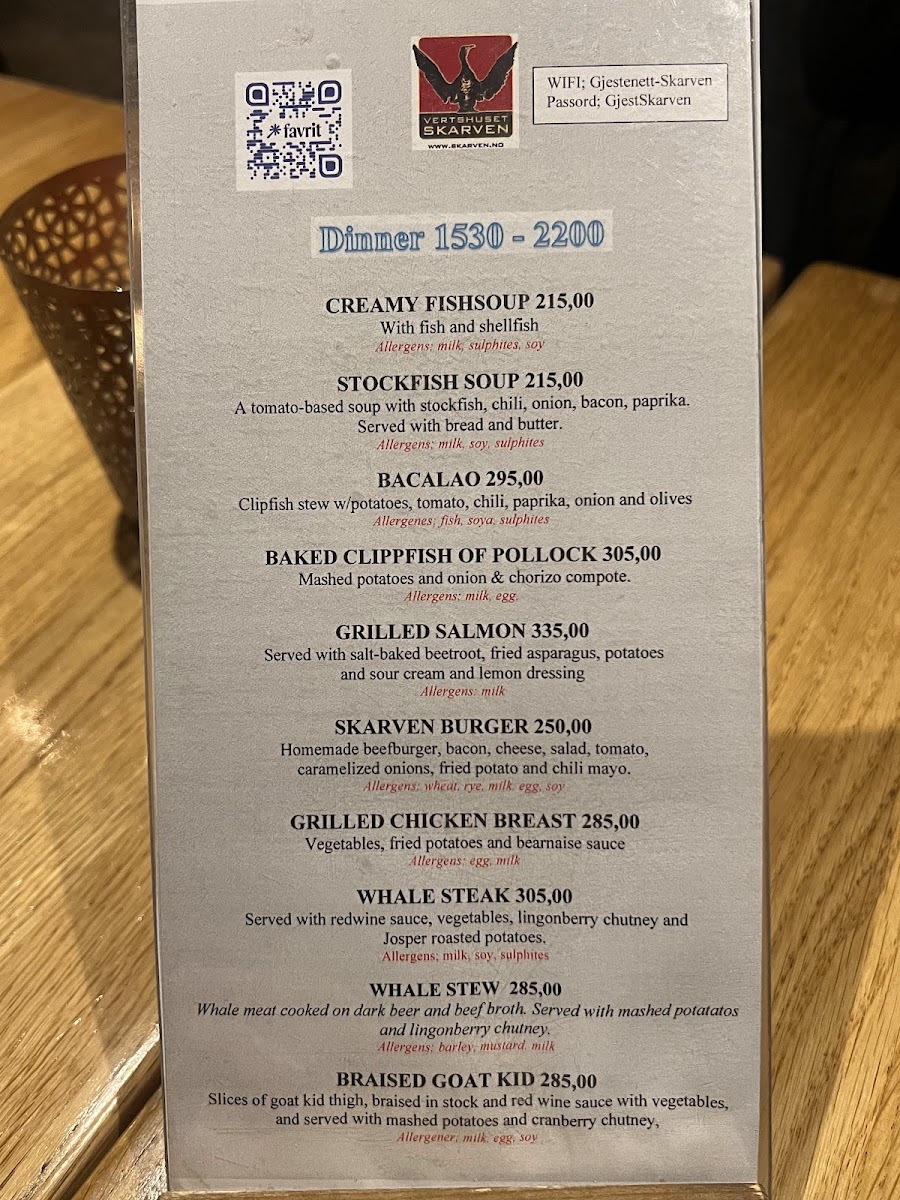 Guests rave about the whale stew, with its tender meat and delightful lingonberry sauce, while the Stockfish soup impresses with its rich, tomato-based flavor. The ambience is warm and inviting, making it an ideal setting to enjoy these culinary delights. Whether you choose to dine on fresh salmon or indulge in savory pollock, Skarven Kro ensures a memorable dining experience that celebrates the essence of Norwegian cuisine.